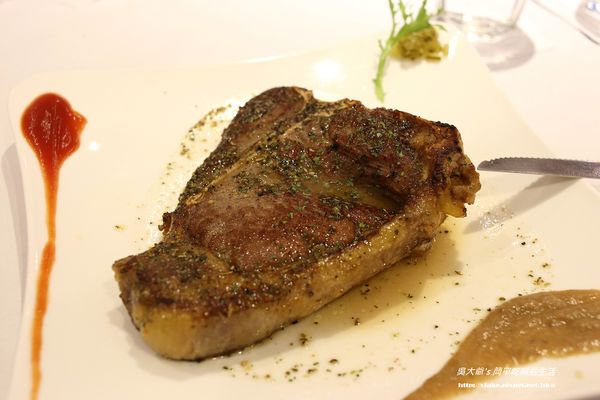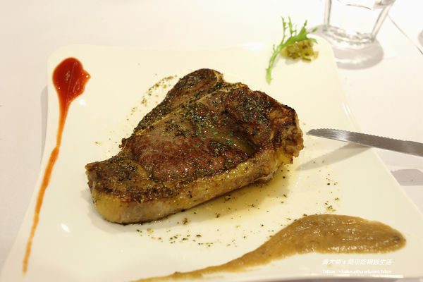 ↑丁骨牛排,可以看到左下角有一大塊黃色的區塊....都是肥油....