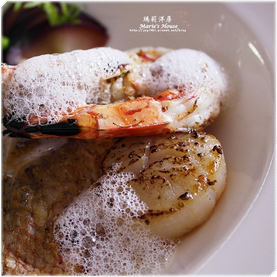 海鮮以乾煎的方式呈現,漂亮的火炙痕跡讓海鮮更加誘人,
