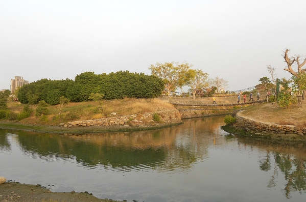並打造水上長廊與生態島,另規劃有三座吊橋。