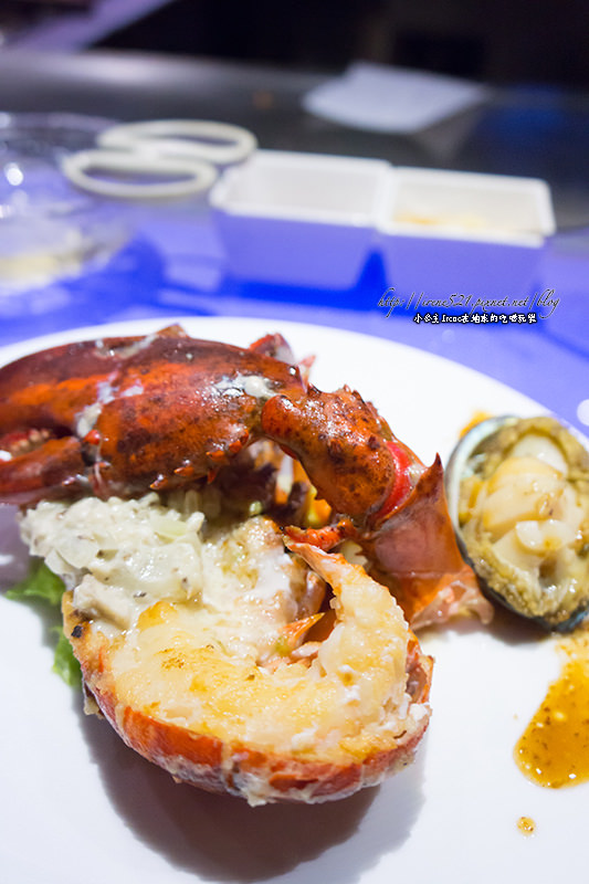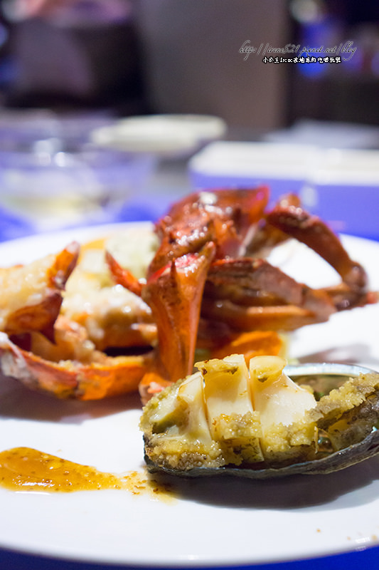 豪華的「波士頓活龍蝦(半隻)+法式大鮑魚」!衝擊視覺與味蕾神經的組合阿!