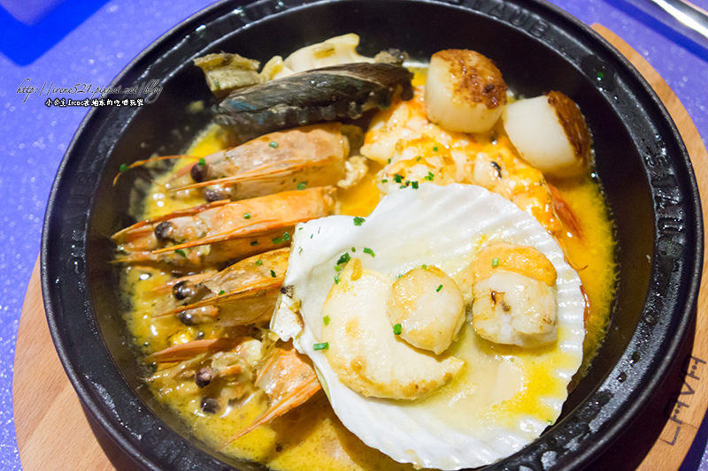 太豐富的海鮮集合,令人食指大動!底醬搭配紐澳良白酒奶油蒜醬,