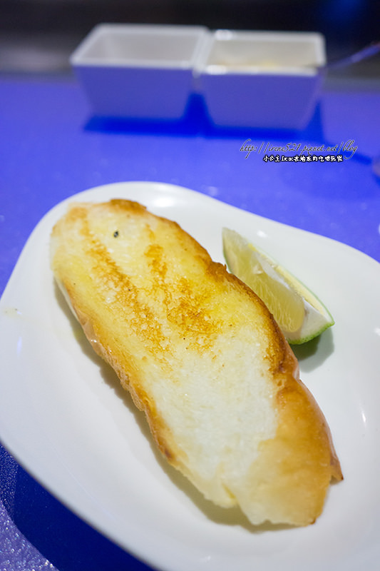 酥脆的麵包可沾著白酒奶油蒜醬一起吃,味道很棒。