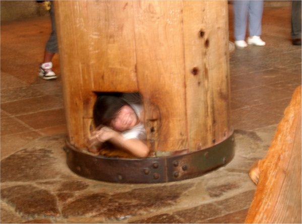 大佛右後側這根厚重的樑柱,底下有一個洞,聽說是大佛的鼻孔,穿過此洞能保佑平安耶 ↓