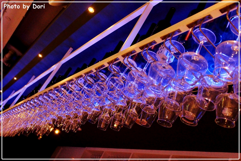 看著這些一整排的高腳杯,就能大概知道這吧台有多大了吧!(實在很好奇究竟有多少只杯子掛在上方)