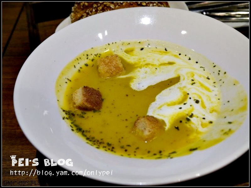 南瓜濃湯溫溫的,扣分! 這冷冷的冬天就是要熱呼呼的湯才過癮啊~!!