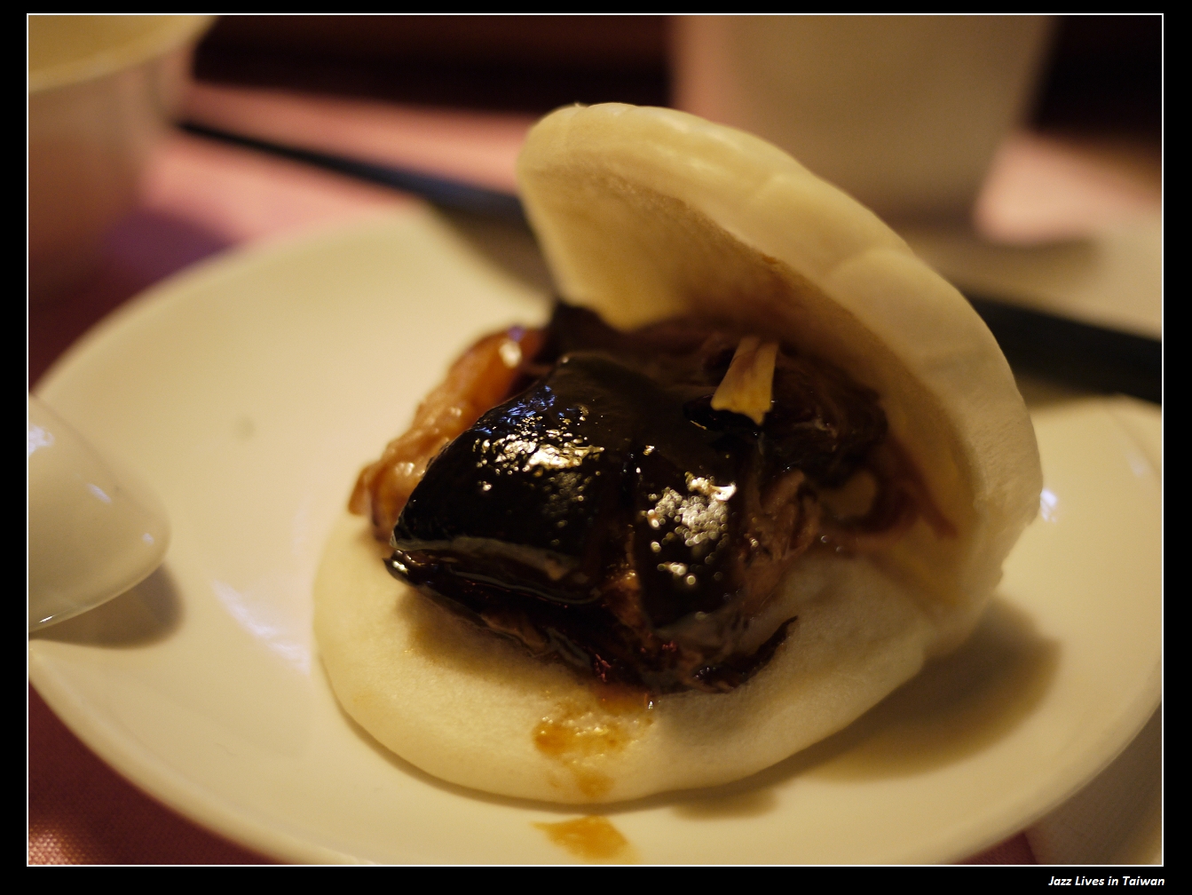 肉要順著紋路切, 如果相反, 則會切得破破爛爛的, 滷肉甘甜甘甜, 包覆進膨軟有彈性的刈包皮, 非常的契合阿!