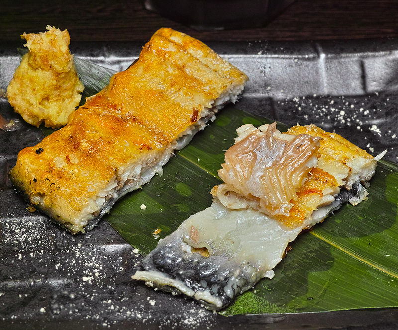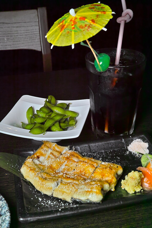 白燒的話會把鰻魚的肉質表面烤到酥脆, 這種口感與強調滑嫩的蒲燒鰻是不一樣的, 搭上原本就有灑的柚子鹽或吃重口味一點