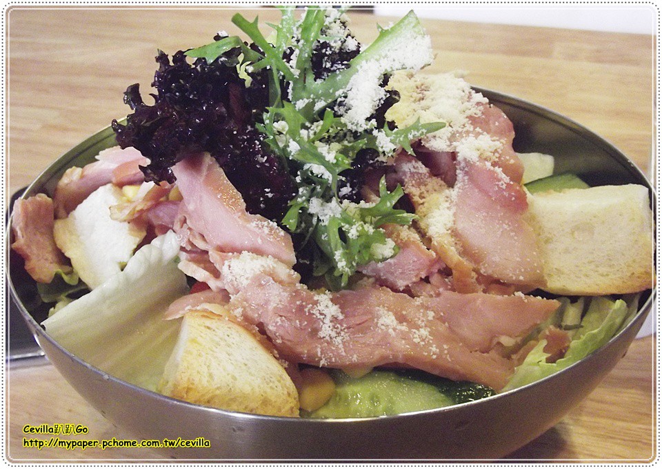 沙拉碗內灑了不少起司粉味道算是相當足夠。份量真的不少,