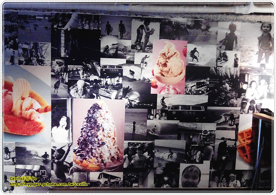牆面的裝飾照片為黑白的生活照為主並巧妙的與店內的創意冰品結合在一起。