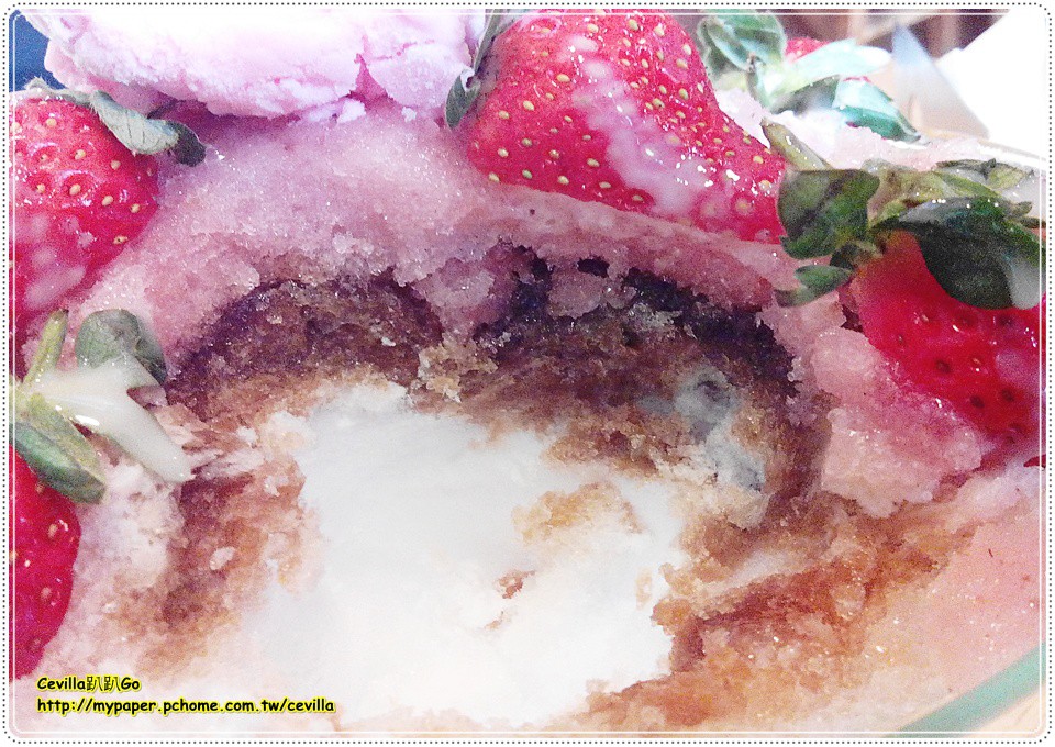 除了刨冰外還加了一顆草莓口味的冰淇淋,
