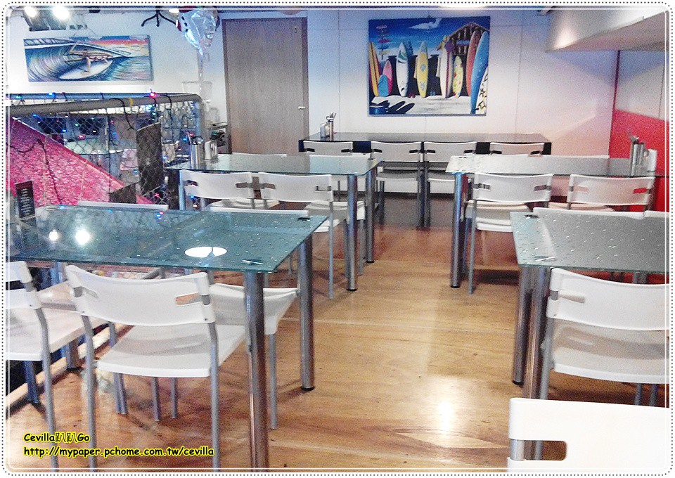 店門口的餐點介紹還是沖浪板吔!店主人應該是很愛沖浪的極限運動。
