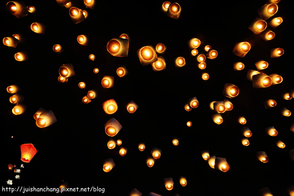 一盞盞翱翔在黑夜消失在天際的天燈,彷彿可愛的水母載著每個人的希望送給老天爺