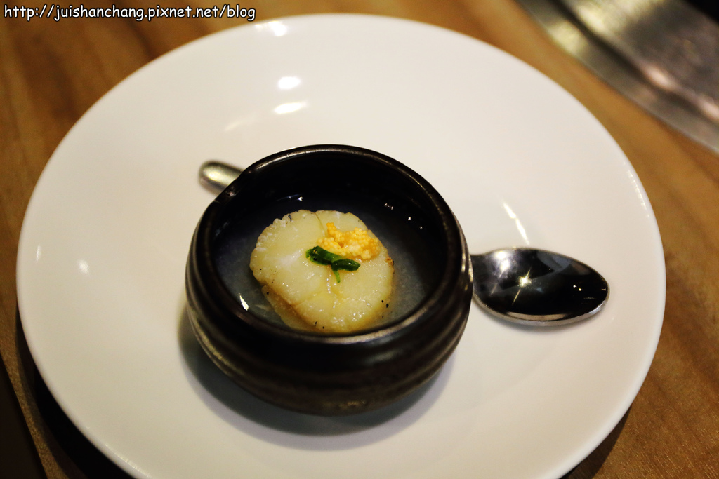 北海刺身級瑤就是干貝,以小鑄鍋燒煮,保留了鮮美的湯汁,整個精華都在裡頭