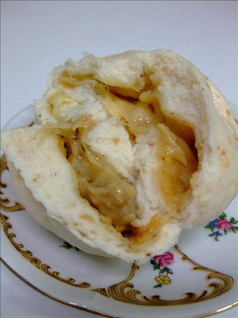 這個肉包是白麵皮 口感比較軟 麵團中揉入了火腿,洋蔥和黑胡椒粒