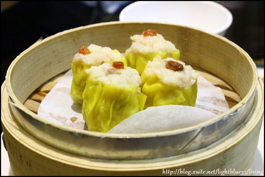 這是晶瑩鮮蝦餃,一籠有四個,個個白胖飽滿,一口咬下的口感十足,讓人滿意