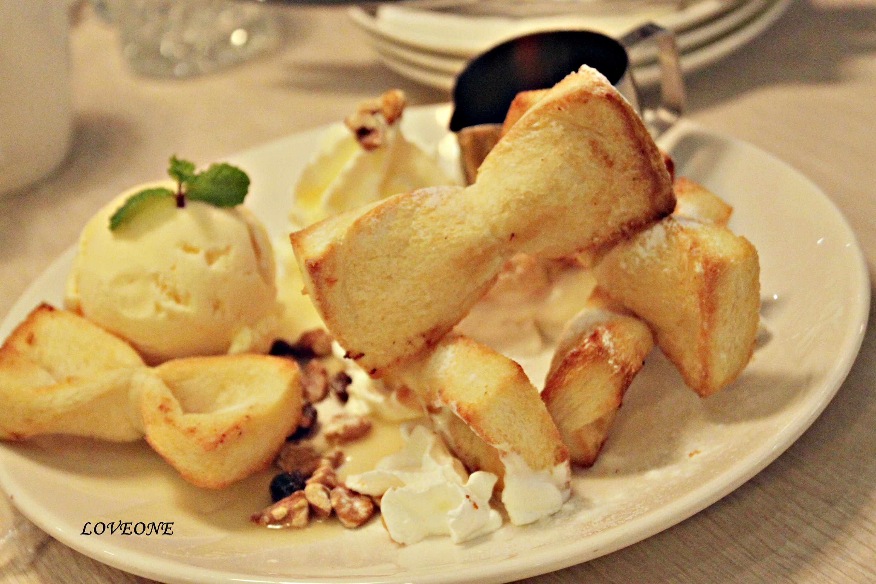 一盤只有幾個領結 一下子就吃光光了啊 哈哈哈 沾荖旁邊的奶油和冰淇淋都很合適啦 我自已覺得這個很好吃 也適合不愛吃很甜的人唷