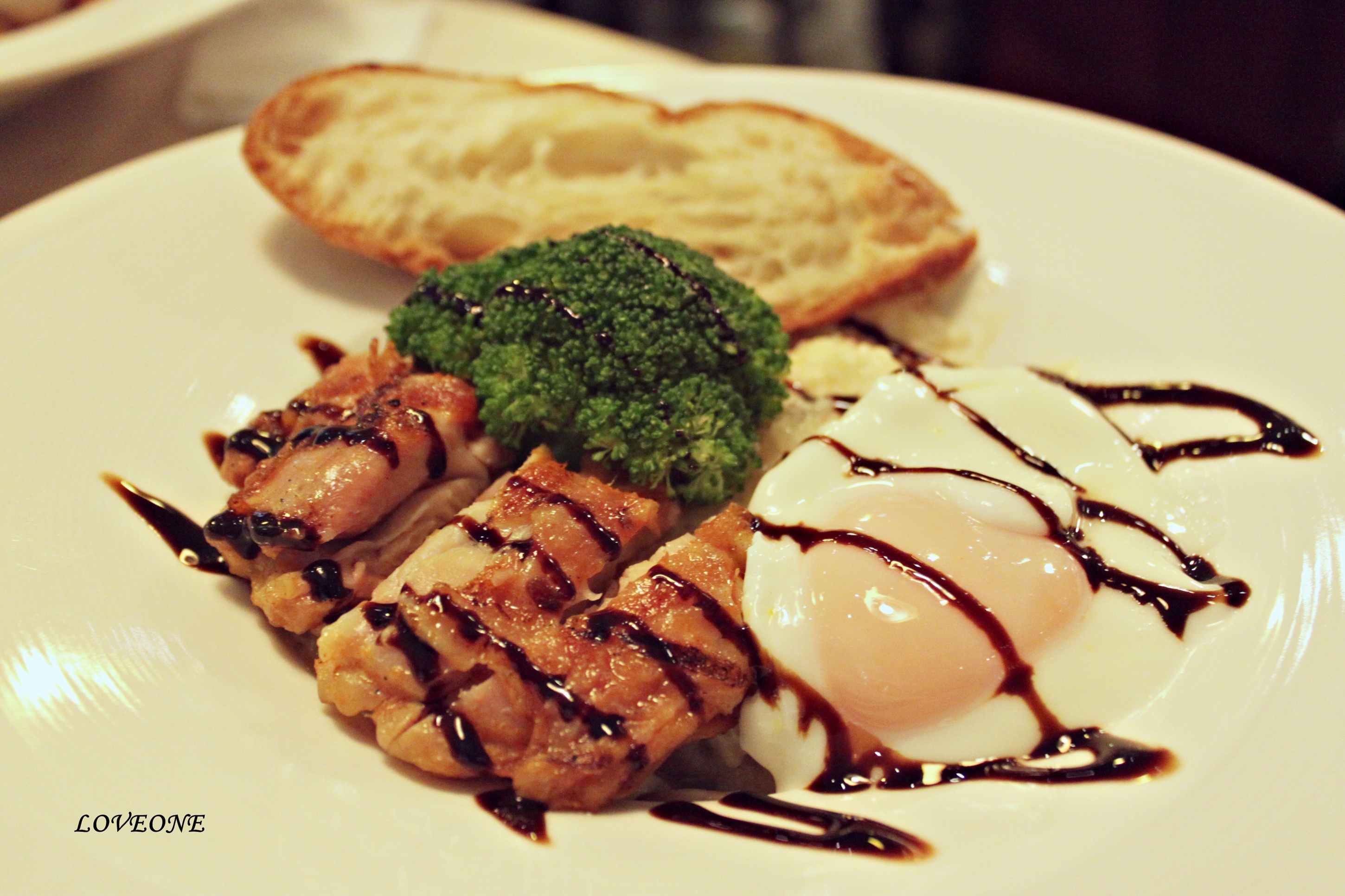 擺盤確實也讓人眼睛為之一亮 燉飯被烤雞和半熟蛋遮住囉 份量其實是女生一個人吃的完的