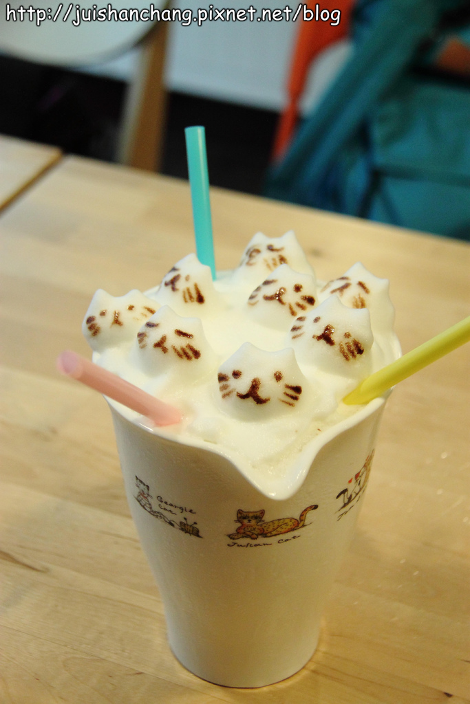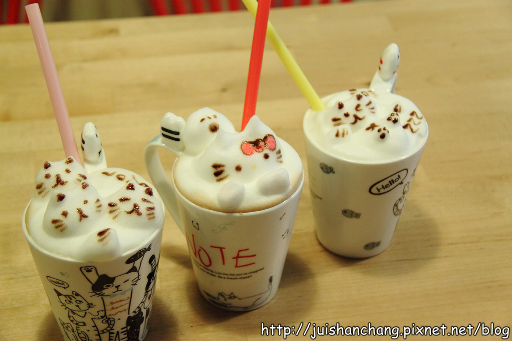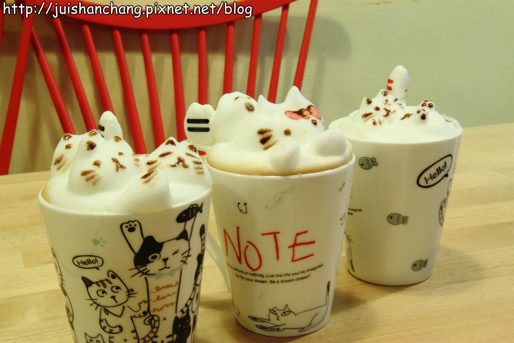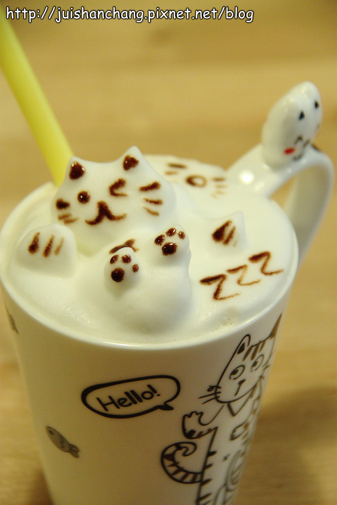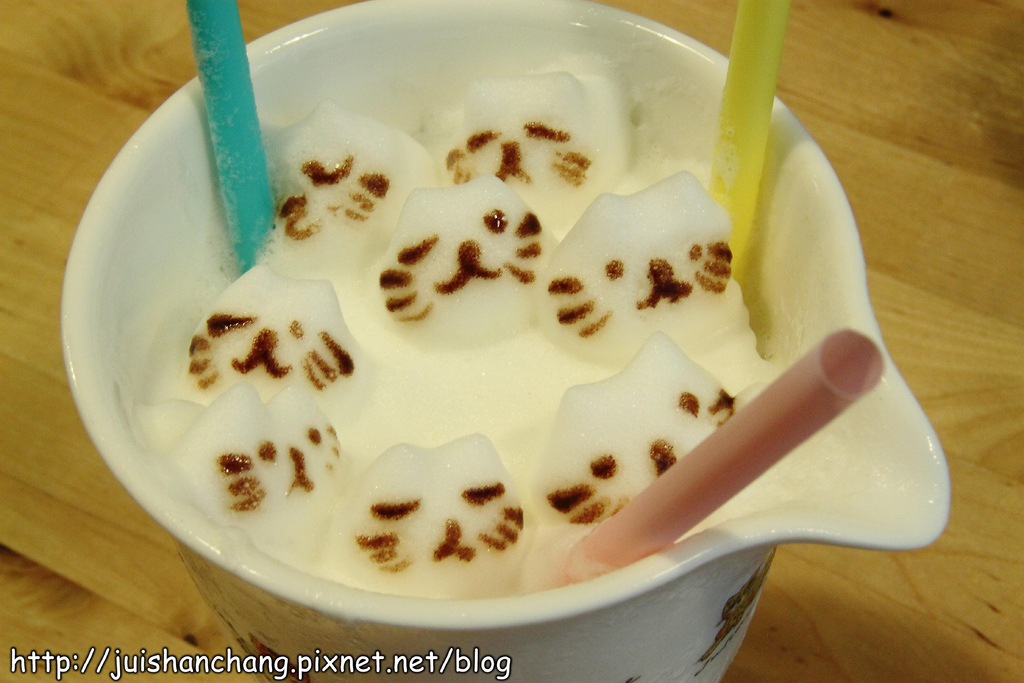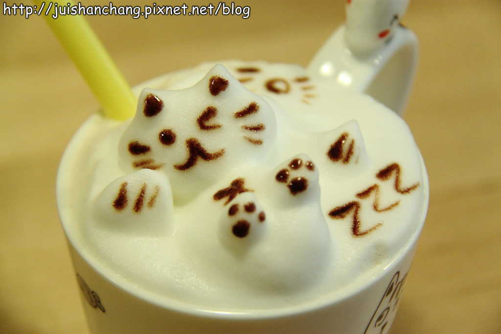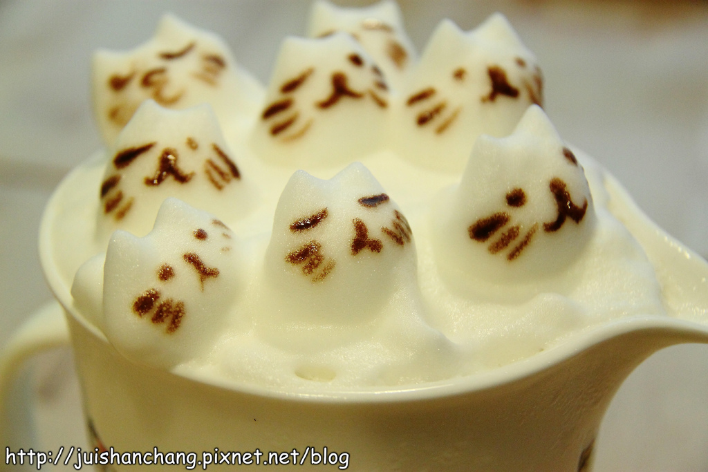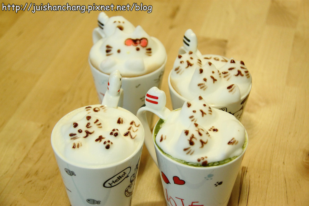 喵嗚~~喵嗚~~喵‥‥‥我們正被一群可愛的喵咪包圍~~好厲害的拉花技術‥‥‥全部都能拉出立體效果耶(拍拍手