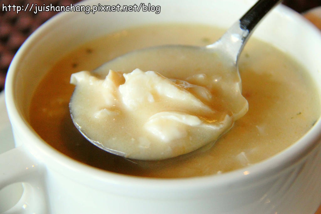 湯品:A.麻油南薑汁鴨肉丸子湯。B.經典巧達鮪魚奶油濃湯(2選1),套餐配湯可是一點都不馬虎,鴨肉丸子湯,喝起來很像薑母鴨的味道,很順口;巧達鮪魚奶油濃湯,新鮮海鮮搭配香濃的巧達湯底,散發出鮮美甜味