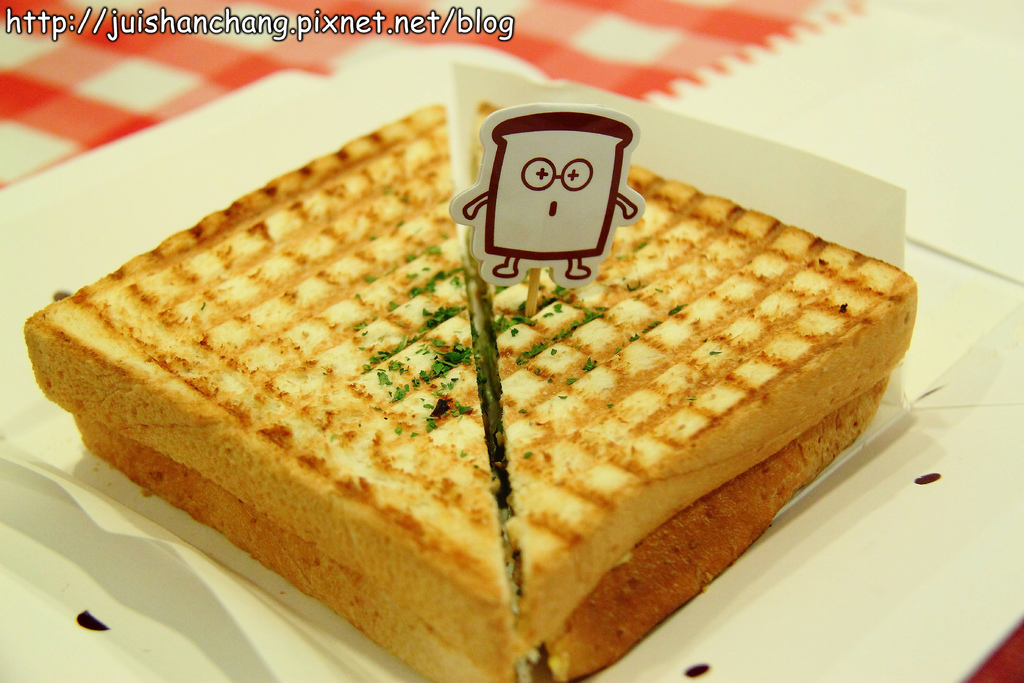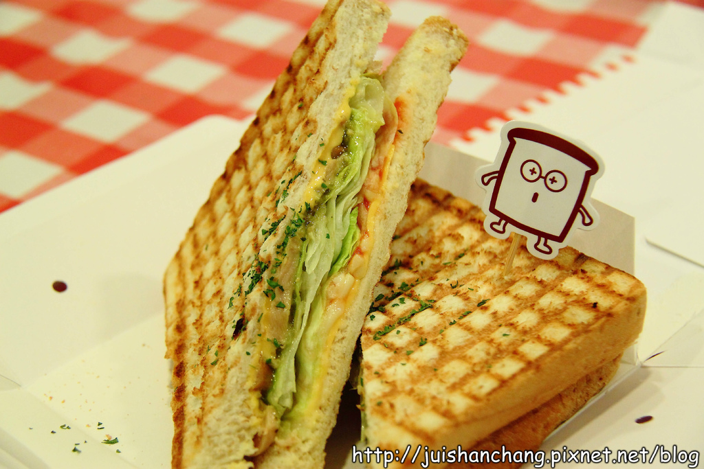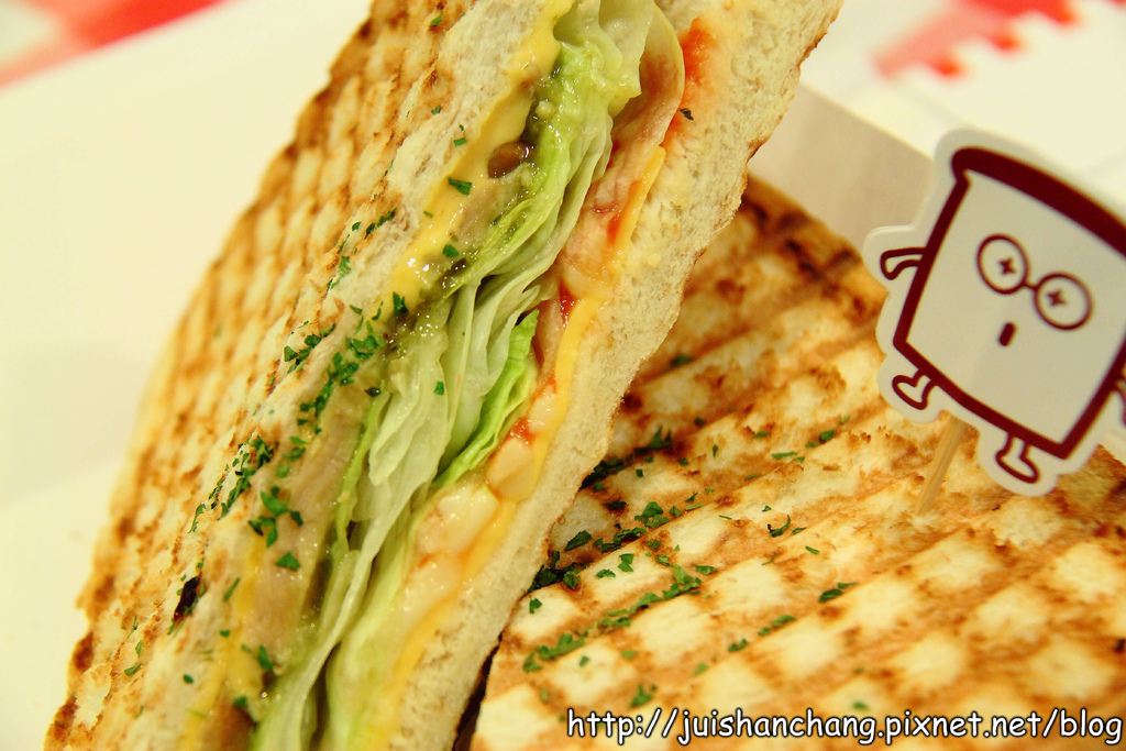 羅勒雞肉帕尼尼~ㄟ~來這裡不只要吃他們的厚片,殊不知他們的帕尼尼也是深得我心耶!漂亮的烙痕,飽滿的內餡!!