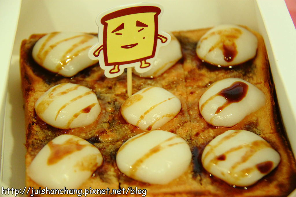 白玉花生厚片~一打開就聞到好香好濃的花生醬香,上頭的白玉麻糬,潤濃郁的花生醬加上軟Q麻糬加上鬆軟厚片真的是一絕呀!