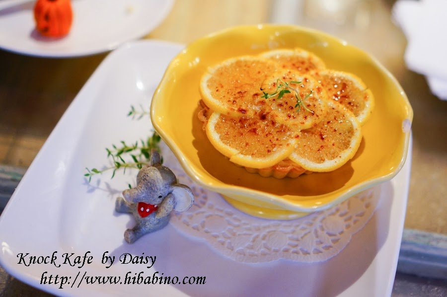 敲敲的檸檬塔,樣子跟焦糖香蕉塔有異曲同工之妙,只不過是香蕉片換上了檸檬切片。