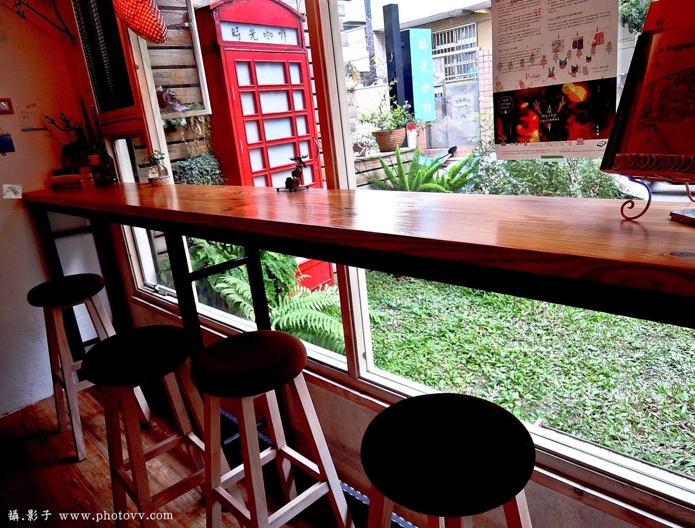 ↓隱身在東海藝術街巷弄裡~有間外面佈置著小小庭園。庭園中有著一裝飾的醒目紅門,門上寫著"時光咖啡",彷彿小叮噹的任意門般進入你所想像的時間與空間。