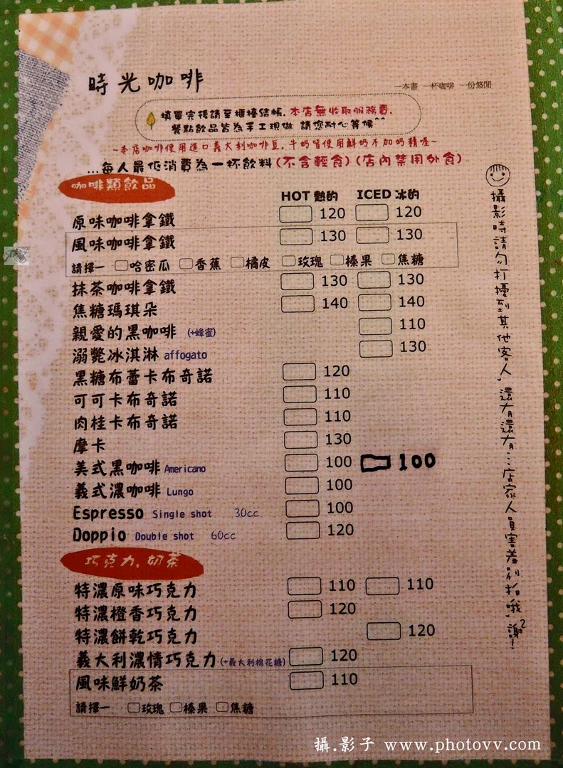 原文出處:【台中美食】東海國際藝術街下午茶咖啡店推薦-時光咖啡。內有菜單與停車位置資訊