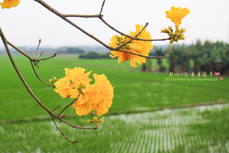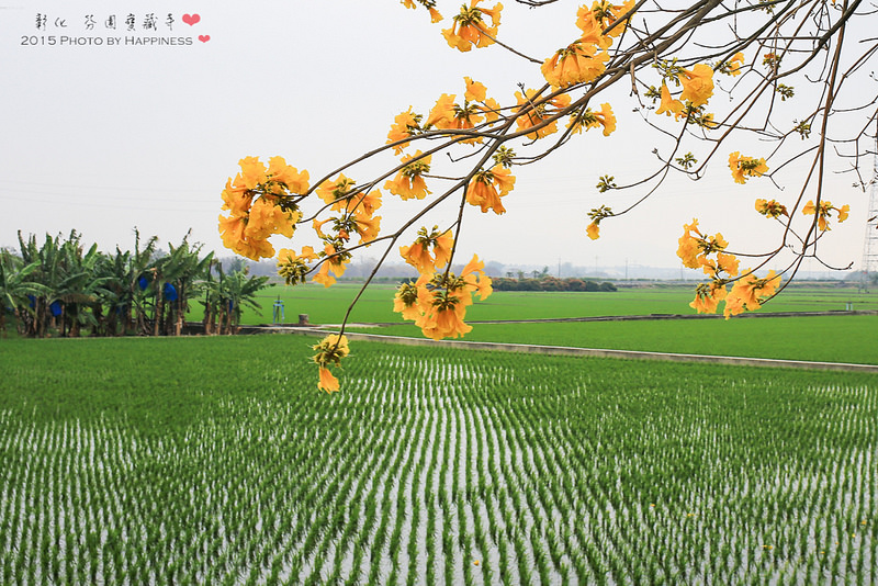 ▲▲▲彰南路上很多這樣的水田,翠綠的水田配上黃花的鮮豔,獨樹一格的美
