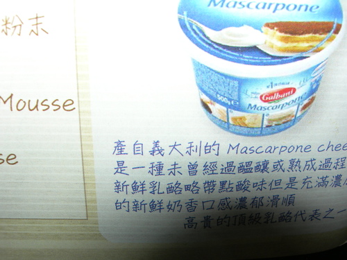 最外層是香草海綿蛋糕粉末,中間白色部分是馬斯卡彭慕斯,