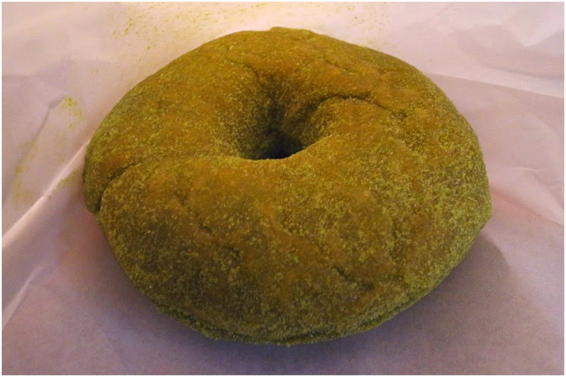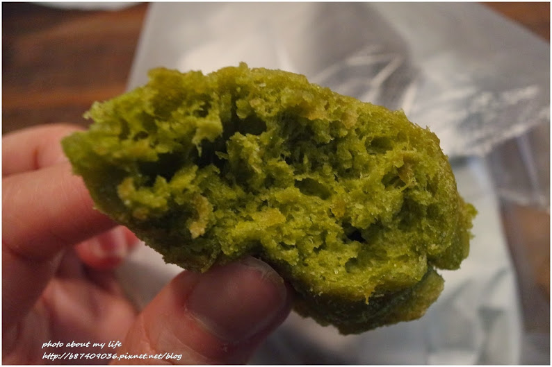 切開才發現裡面就跟抹茶甜甜圈一樣綠油油 抹茶口味無誤(笑)