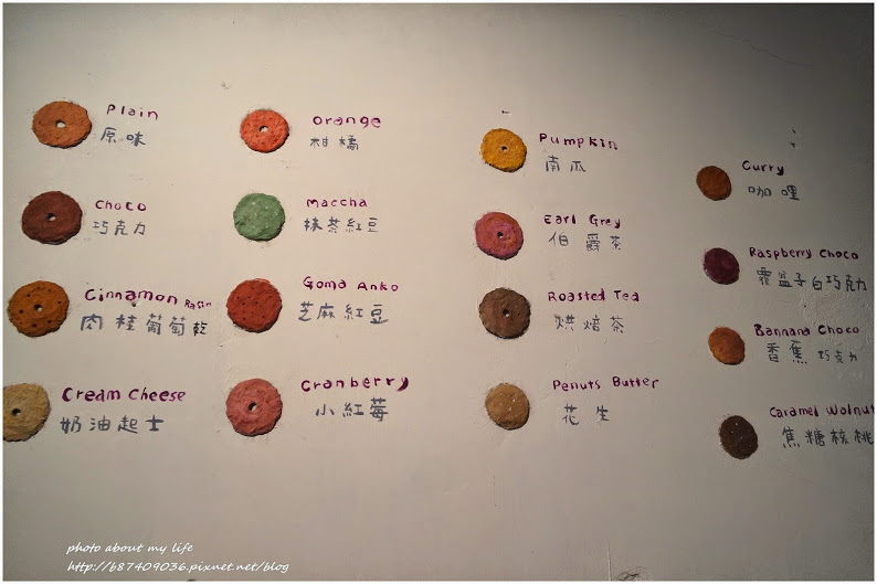 小立架上貼著代表各式甜甜圈的彩色小圈很有日本小店的文創風 不過可有可無的存在感老是被踢倒(笑)