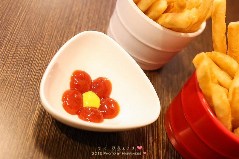 小花沾醬是番茄醬&黃芥末醬組成~很可愛的一朵花,弄得超漂亮又乾淨