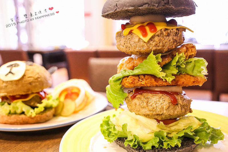 而驚聲尖叫的漢堡麵包則是竹炭口味的,他們家的漢堡麵包都很鬆軟,但要注意要快點吃下