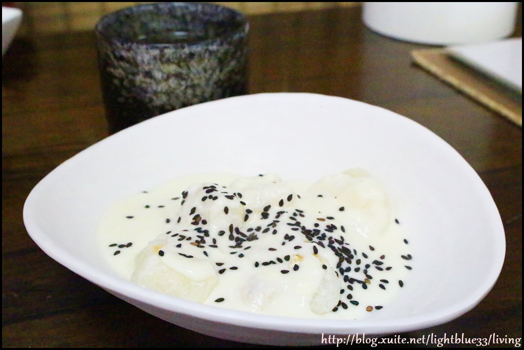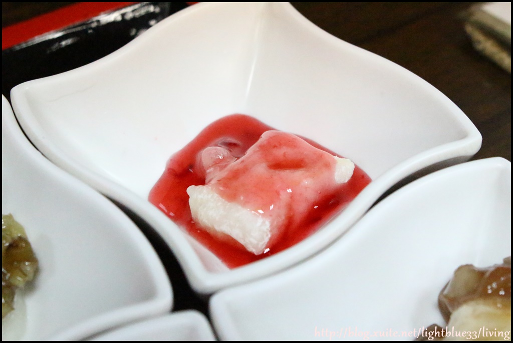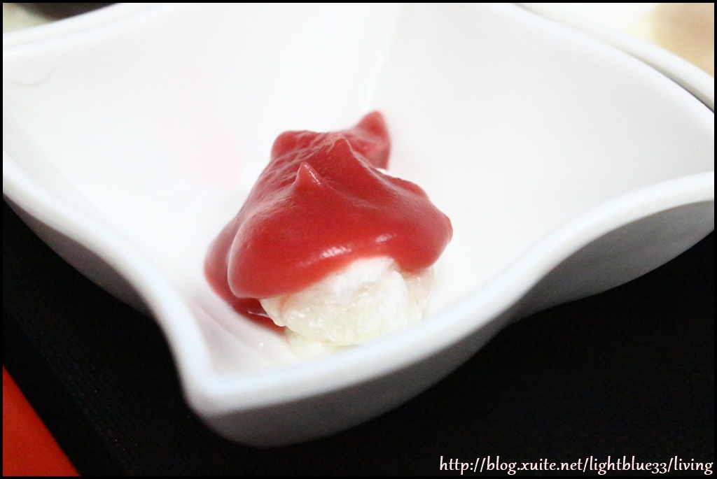 其實櫻花本身吃起來沒什麼味道,所以醬汁搭配的是甜甜的蓮子