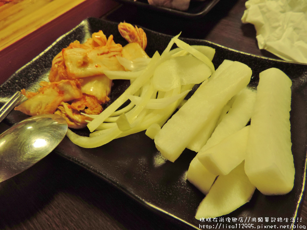 糕糕在尚的烤肉是鐵盤的唷~~其實烤肉我還是比較喜歡用鐵盤烤,吃起來感覺跟網狀烤肉就是不太一樣XD