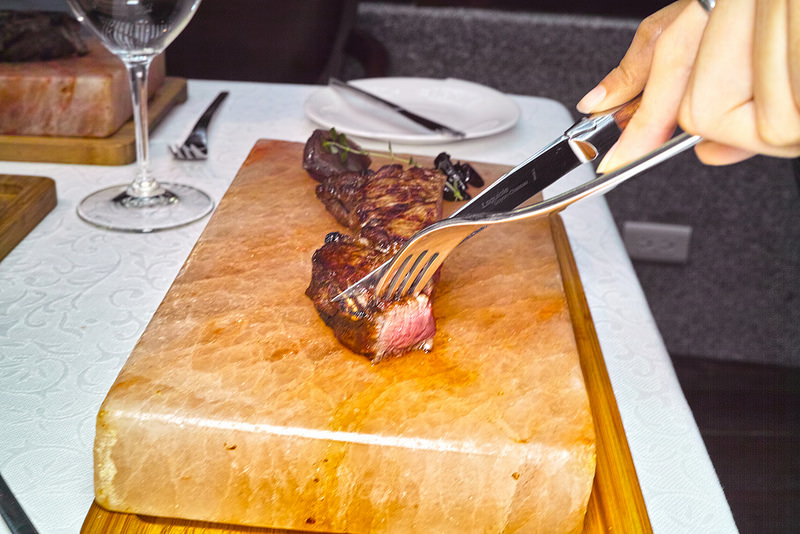 有人可能會問說, 調味勒? 免, 牛排底下是一大塊鹽磚, 自然等於一般灑上鹽的風味, 不夠鹹多抹兩下再吃就可以了