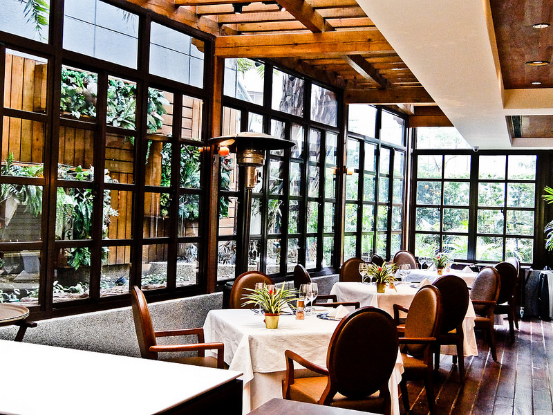 幾乎半個餐廳都圍繞著明亮的玻璃窗, 頂上也有一半是透明的, 室內光源好的不得了