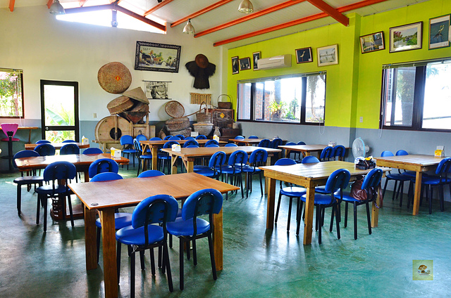停好車後就步行一小段路前往餐廳嚕,這景觀餐廳的佔地頗大的,綠意盎然的環境,讓人看了就很舒爽,也比較不用擔心太陽很毒辣,最大的特色就是它靠海,跟大部分位於山上的景觀餐廳不同,在這邊吹的就是海風哩,夏天來超涼快的!