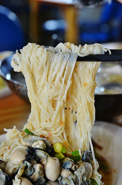 真的是用蚵仔堆疊起來的唷,保守估計蚵仔至少有20隻以上吧,看起來蠻肥美的,只是現在好像不是產季,不然應該會更好吃,底下的麵線大約是2~3碗的份量,突然覺的不需要加點白飯,吃麵線就會飽了。