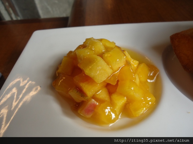 哈哈!我吃不出是什麼水果,只知道是淋了百香果汁, 好甜喔