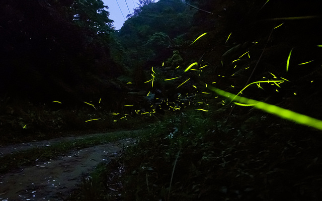 螢火蟲出沒地通常較潮溼、陰暗無光害、山區且收訊差,需注意安全。