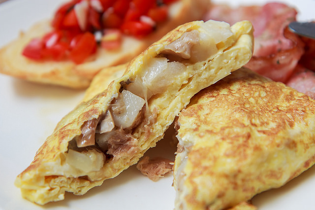 有馬鈴薯、鮪魚還有菇類,烘蛋跟內餡的味道整個非常的融合