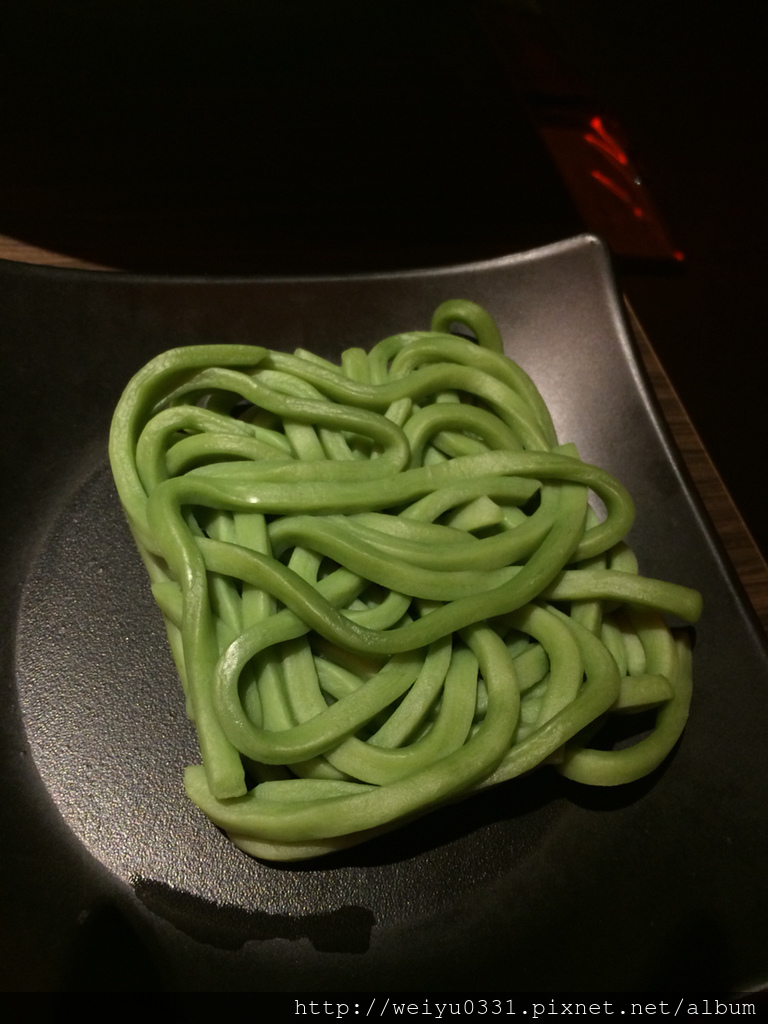 加點的烏龍麵,因為是昆布烏龍麵所以是綠色的,煮起來超級Q,而且吃起來非常彈牙,不過一份40元也算是滿高檔的。