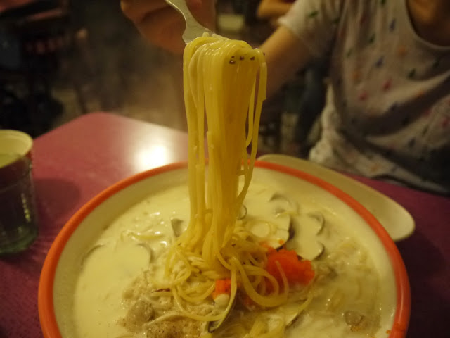 千盼萬盼的鮮菇蛤蜊佐蝦卵奶油義大利[湯]麵終於登場