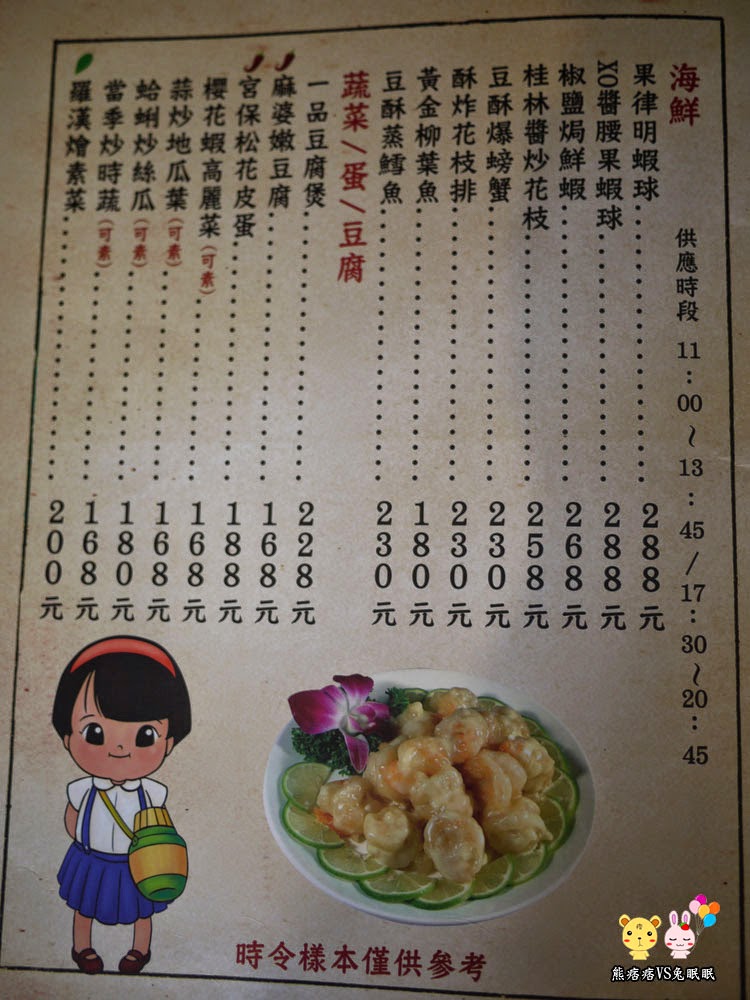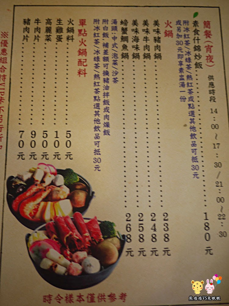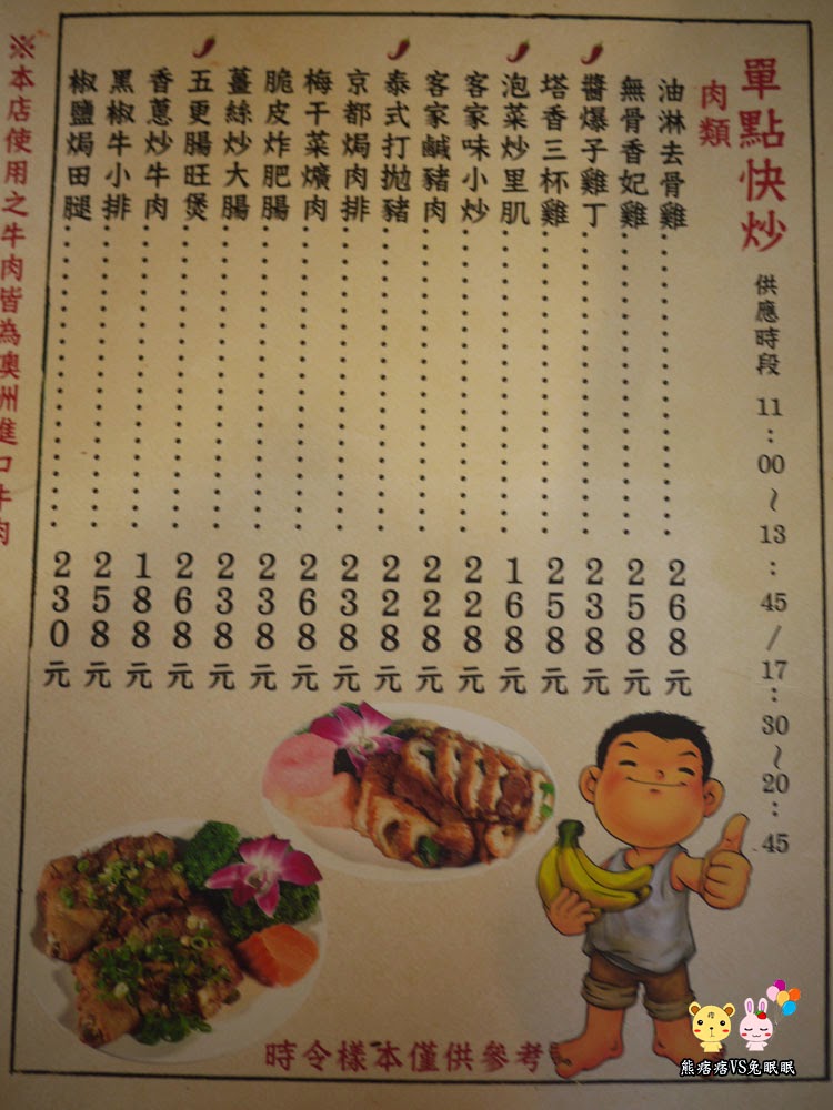 菜單部分如上,去過好幾次的朋友說,建議單點快炒比較好,其他茶點類的看個人喜好,每一位都需要低消一份餐點或著是飲料,裡面甚至可以提供100人訂席做活動宴客用。