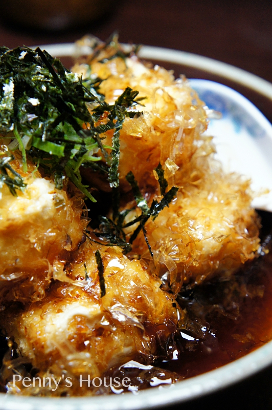 剛剛炸好的花柴魚豆腐,我第一次吃到豆腐外面是利用柴魚片包起來炸,