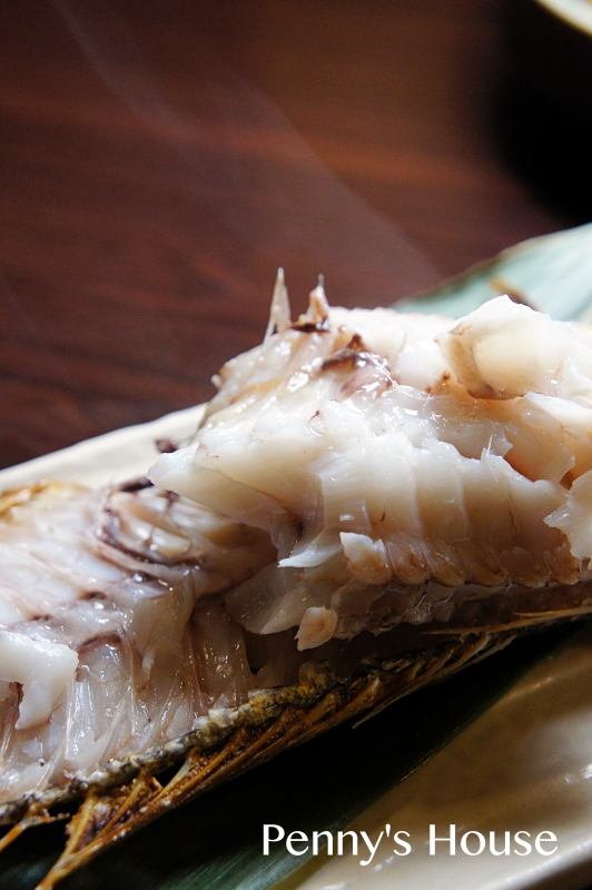 烤魚的時間更久,不過烤魚相當好吃!! 師傅也很細心,他把魚兩側稍微切開,