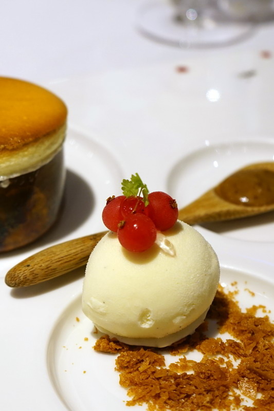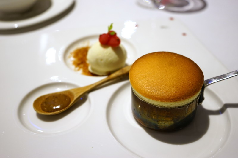 就在2隻龍蝦與整個套餐的加持,大概已到盡頭,可是眼看著送來的甜點,現烤舒芙蕾,怎麼馬上又有一個胃了