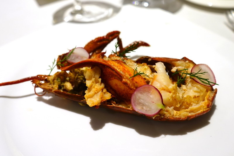 就在吃完肉盤後,原來很滿足的時分,被送來的龍蝦,又推向上,這是加入LINE好友,出示序號換來的半隻龍蝦